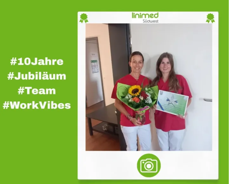 Wir blicken auf 10 Jahre Erfahrung und Wachstum zurück. Wir wünschen unserer Kollegin Silvia alles Gute zum 10-jährigen Jubiläum bei der Linimed Südwest.