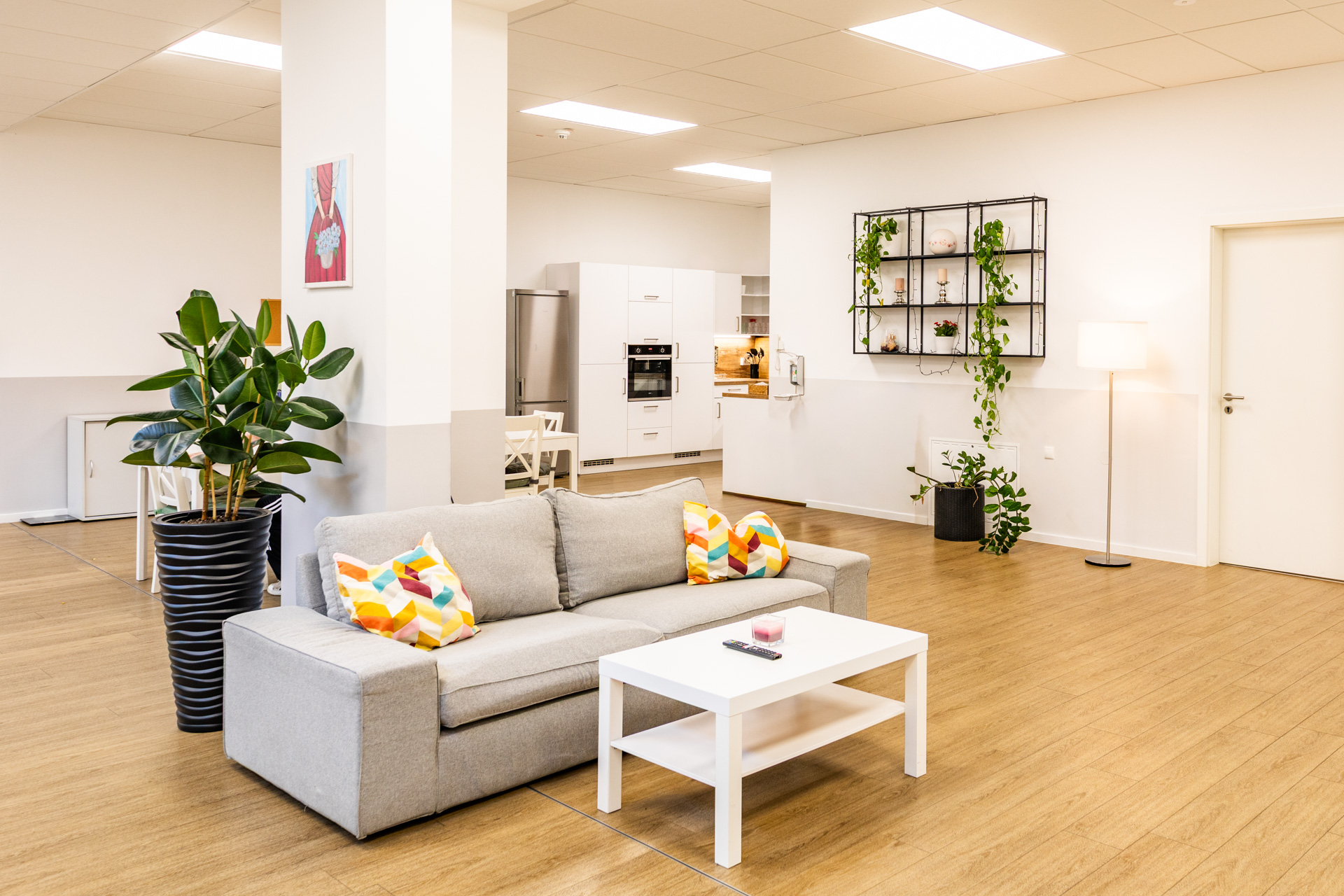 Neben den privaten Rückzugsräumen bietet die Wohngemeinschaft großzügige Gemeinschaftsbereiche, eine moderne Küche, Funktionsräume sowie barrierefreie Sanitäranlagen. Hier entsteht eine wohnliche Atmosphäre, in der Pflege, Alltag und Gemeinschaft harmonisch miteinander verbunden sind.