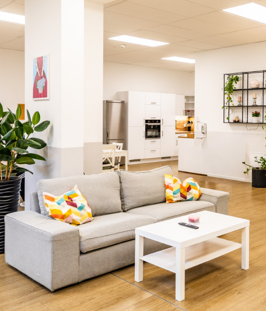 Neben den privaten Rückzugsräumen bietet die Wohngemeinschaft großzügige Gemeinschaftsbereiche, eine moderne Küche, Funktionsräume sowie barrierefreie Sanitäranlagen. Hier entsteht eine wohnliche Atmosphäre, in der Pflege, Alltag und Gemeinschaft harmonisch miteinander verbunden sind.